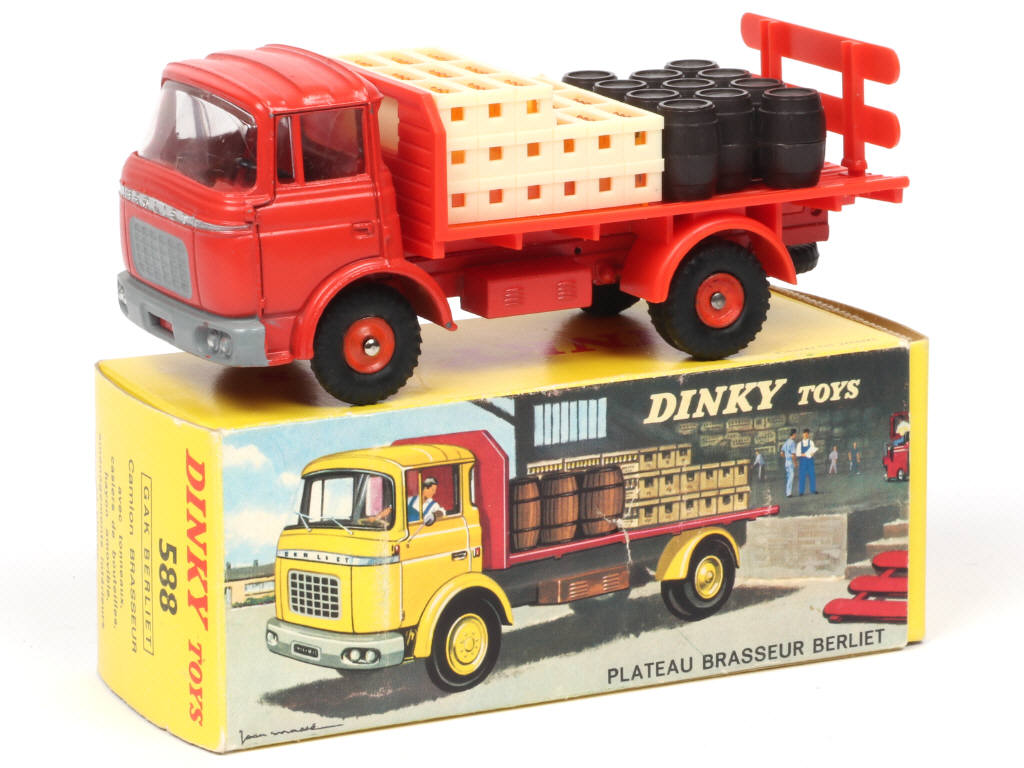DINKY TOYS (FRANCE) 588K BERLIET GAK Brasseur 'KRONENBOURG' rouge orangé, plateau orange