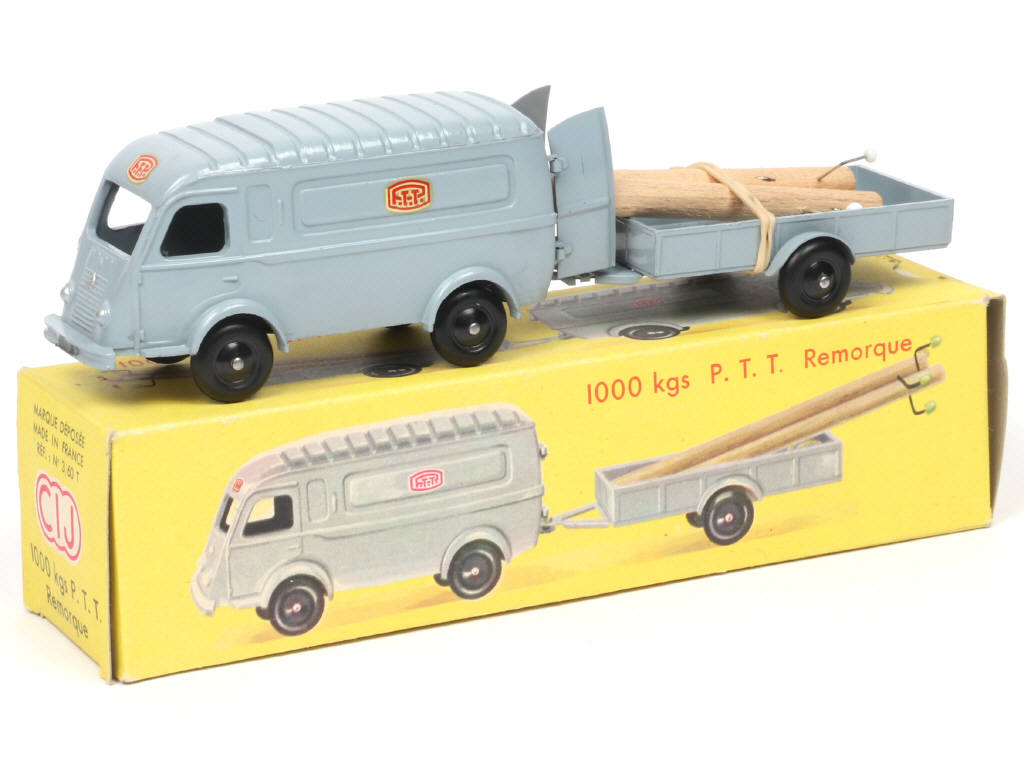 C.I.J. (FRANCE) 3/60T RENAULT GOELETTE 1000 Kg 'PTT' avec remorque gris, jantes noires