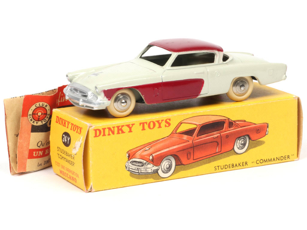 DINKY TOYS (FRANCE) 24Y STUDEBAKER COMMANDER ivoire, toit & flancs grenat