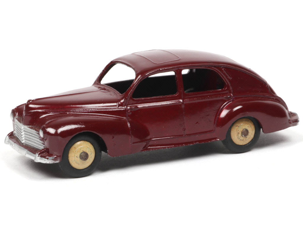 DINKY TOYS (FRANCE) 24R PEUGEOT 203 Petite lunette arrière (version avec intérieur de toit lisse & feu de stop) chocolat, jantes crème