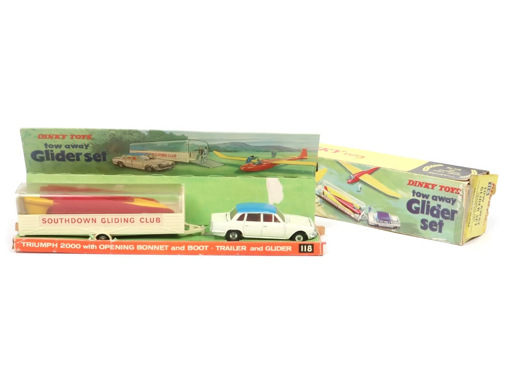 DINKY TOYS (GB) 118 TRIUMPH 2000 & Remorque avec planeur crème, toit bleu