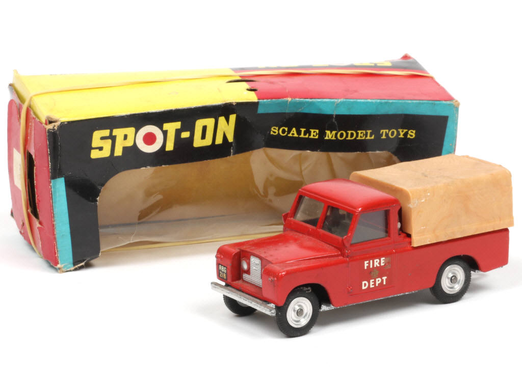 SPOT-ON (GB) 316 LAND ROVER Pick-up bâché 'FIRE DEPT' rouge, bâche beige