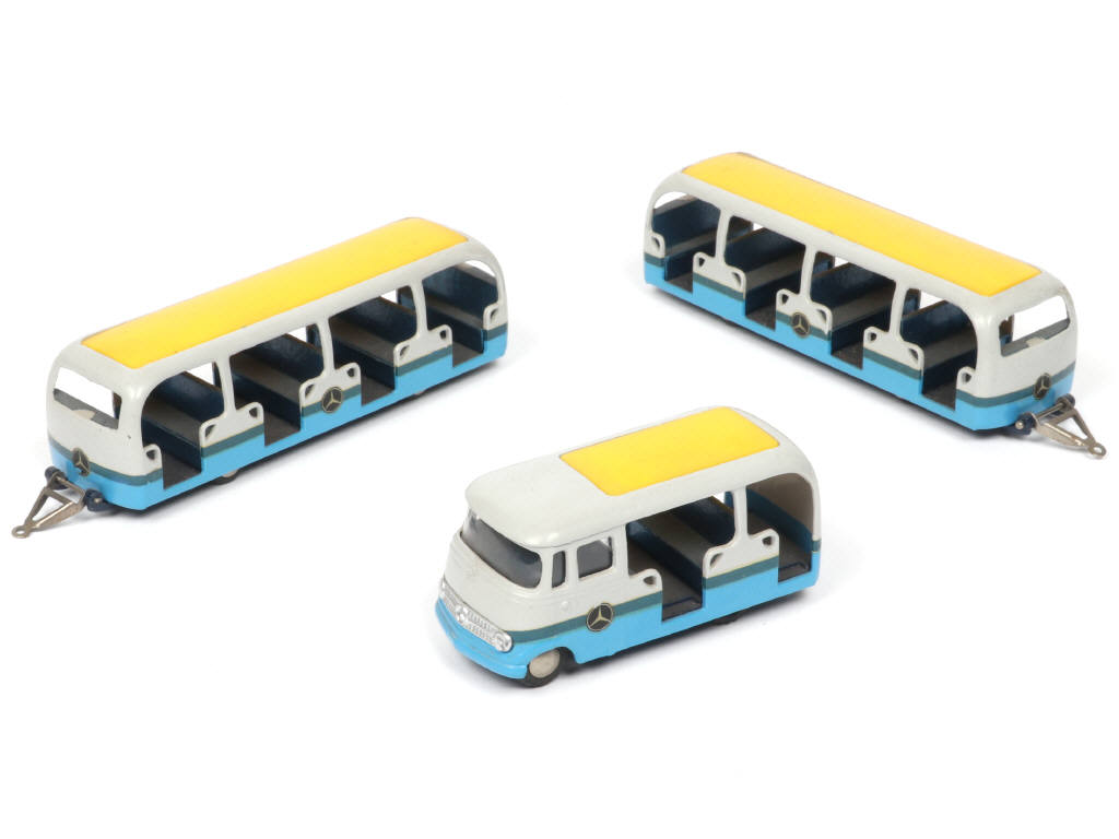 TEKNO (DANEMARK) 851 MERCEDES Minibus articulé à chariots bleu ciel, gris & jaune
