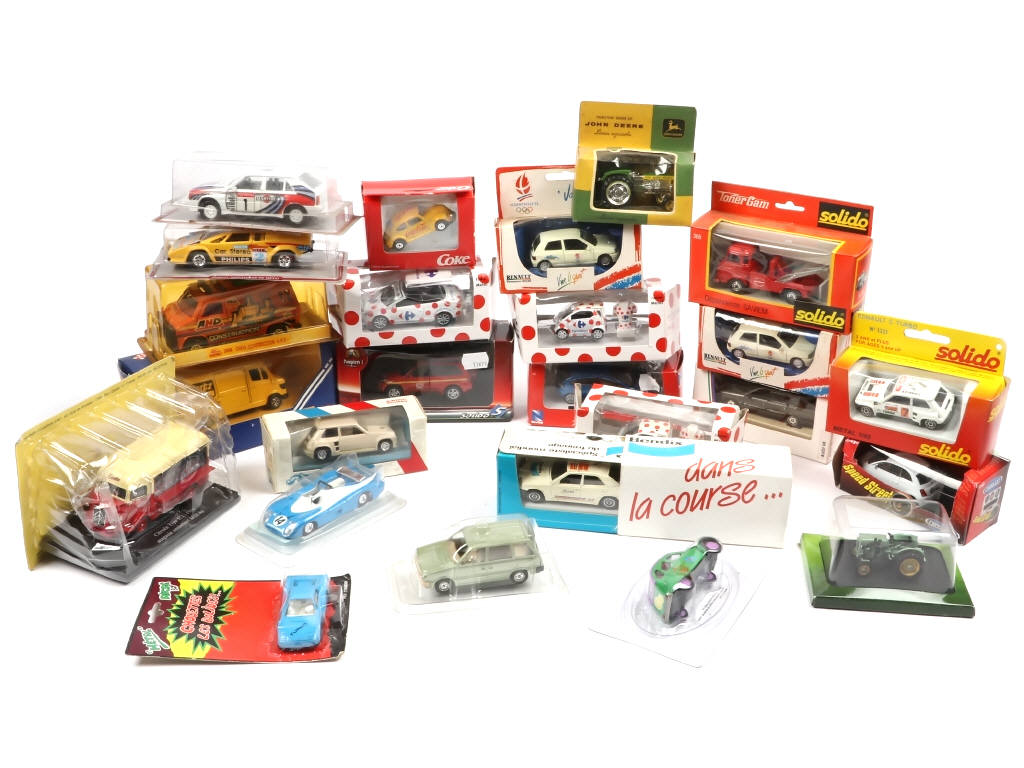 comprend notamment les marques : SOLIDO, GUISVAL, BENDIX, CORGI, RECORD & WELLY - on y retrouve notamment les modèles : dépanneuse SAVIEM, CITROËN 2CV, VAN CHEVI, VOLKSWAGEN - possibilité de petits manques & parties cassées - boîtes encrassées & déformées en états 'b à d'