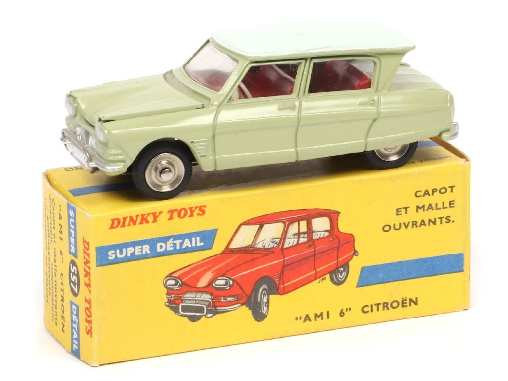 DINKY TOYS (FRANCE) 557 CITROËN AMI 6 (version avec roue de secours sous le capot) vert tilleul, toit blanc cassé