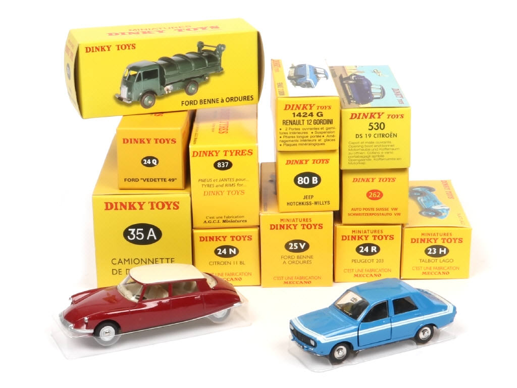 comprend notamment les modèles : RENAULT, FORD, CITROEN & VOLKSWAGEN - on y joint un lot de pneus de différentes sections dont certains copies & 4 boites vides copies