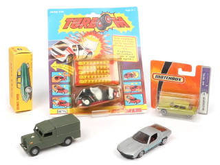 comprend notamment : CITROEN DS (modèle peu courant référence 24C), ALFA ROMEO & LAND ROVER (un petit manque sur un décalque) - 3 modèles en boite (état 'b' - un blister avec perforation & manque) - on y retrouve les marques : MAJORETTE TURBOOM, MATCHBOX, EDITIONS ATLAS, NOREV (fabrication brésilienne) & POLITOYS