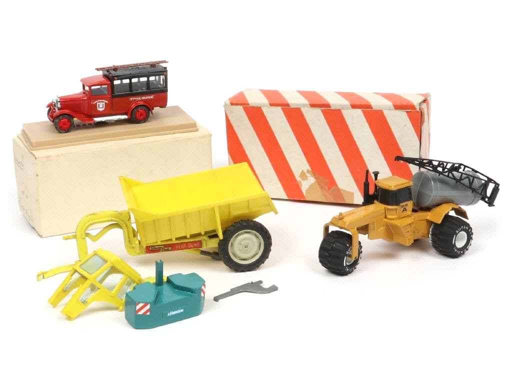 comprend : CITROEN C4F 'SERVICE INCENDIE', benne semi-portée (avec manques) & CUSTOM BIG-A TERRAGATOR avec cuve & système d'arrosage (réalisation artisanale) - on y retrouve notamment la marque MERCUR