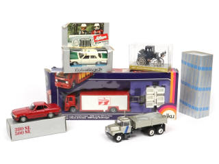comprend les modèles : FORD, MACK (avec sachet d'accessoires), MERCEDES & DAIMLER - on y retrouve les marques : CURSOR MODELL, SIKU, SCHUCO, NZG & CONRAD - quelques boites en état 'c'