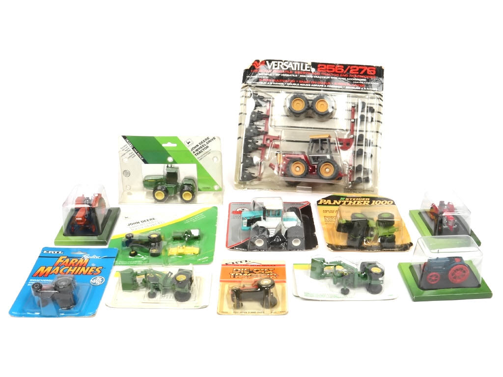 comprend notamment les modèles : panther (série limitée numéroté 612/1000 exemplaires), VERSATILE, JOHN DEERE, MASSEY-FERGUSON, ALLIS-CHALMER & SOMECA - on y retrouve les marques : SCALE MODELS, ERTL & EDITIONS HACHETTE - boites en états 'b' & 'd'