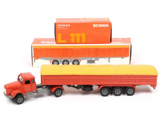 ARPRA (BRESIL) SCANIA VABIS L111 Semi-remorque plateau à ridelles hautes bâchée orange, gris & beige
