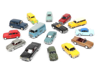 miniatures reproduisant les modèles : RENAULT (majoritairement), OPEL & MASERATI - on y retrouve notamment les marques : NOREV, SOLIDO & VITESSE - quelques petits accessoires manquants sur certains exemplaires