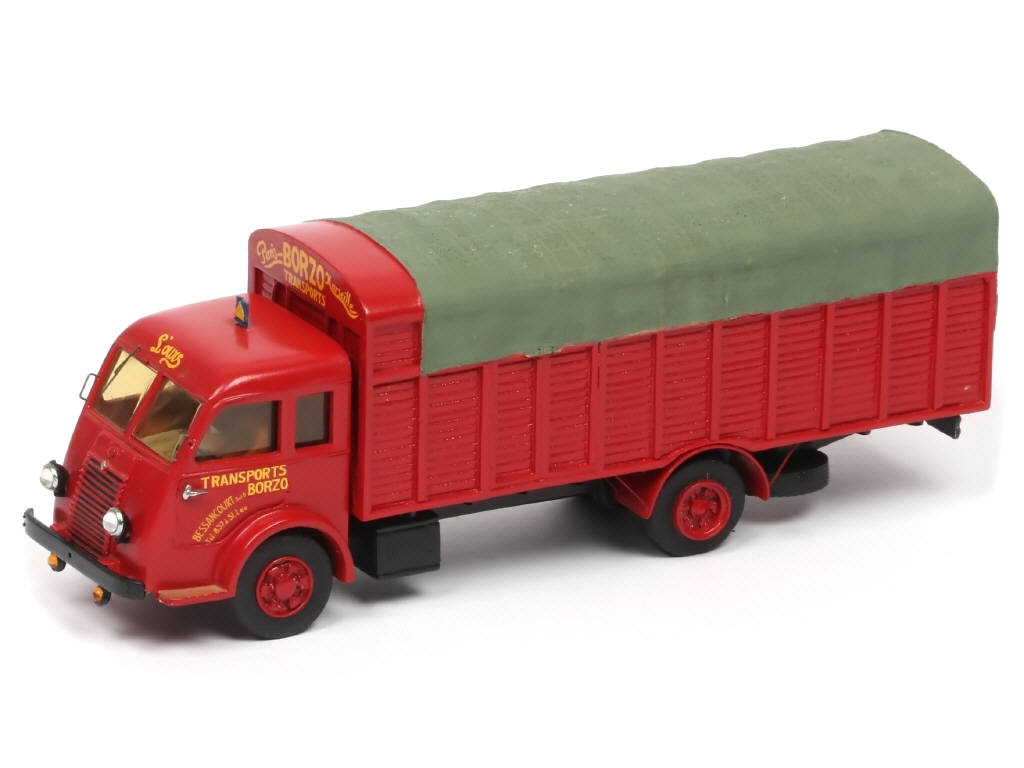 MINITRUCKS (FRANCE) 84 RENAULT R 4080 Camion à ridelles hautes bâché 'BORZO' rouge, bâche verte