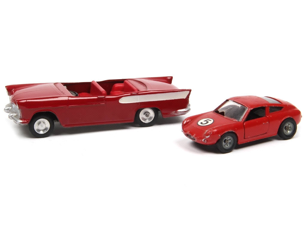 comprend : SIMCA BEAULIEU (démontable - avec moteur fonctionne - manque vitrage) & FIAT ABARTH 1000 (SOLIDO-DYNAM - pare-brise cassé avec manques)