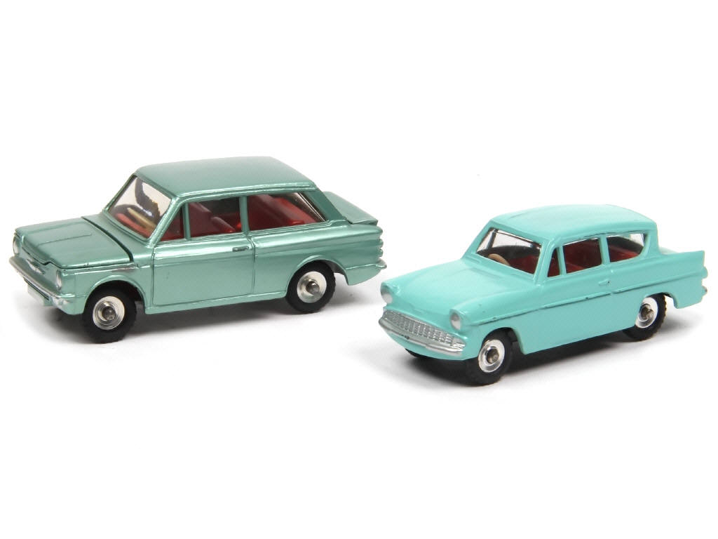 comprend : HILLMAN IMP (avec bagage - un petit manque de peinture sur une aile) & FORD ANGLIA - pneus plus ou moins séchés