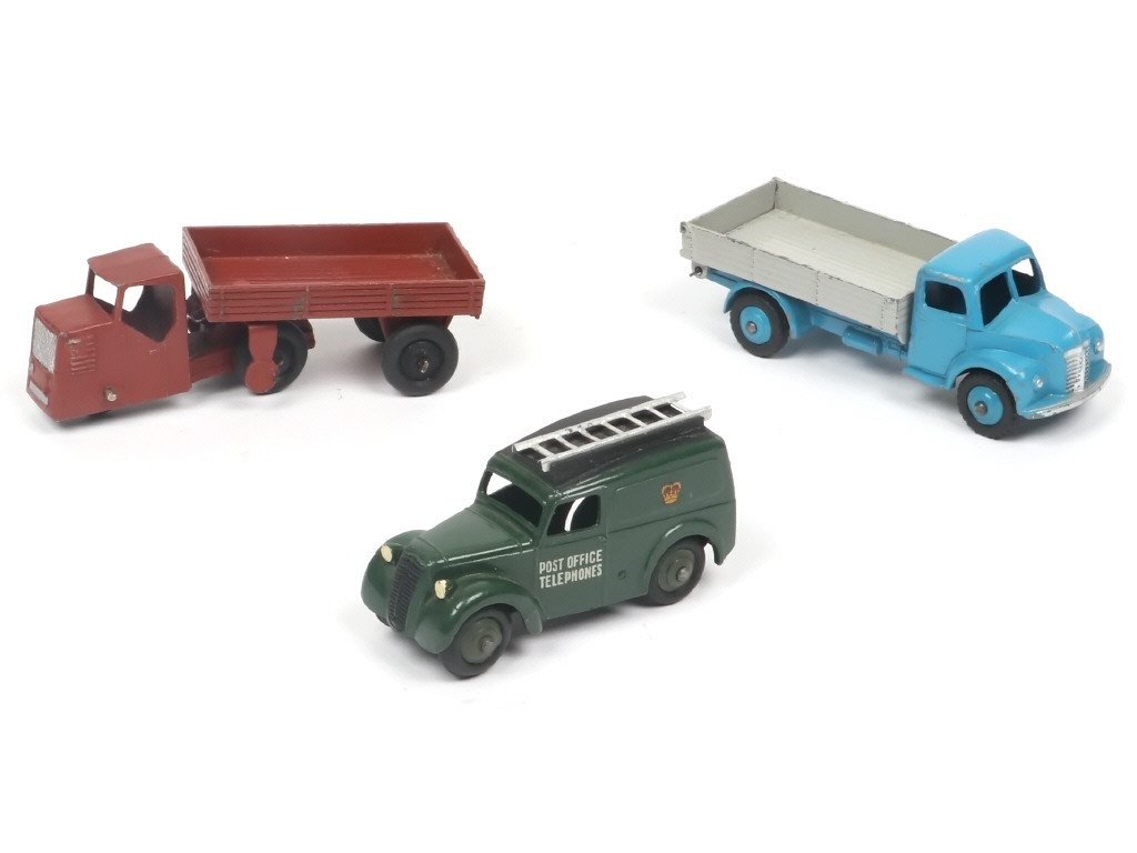 comprend : TELEPHONE SERVICE VAN (phares retouchés), DODGE benne basculante & cheval mécanique (COULEUR RARE !) - quelques pneus séchés