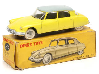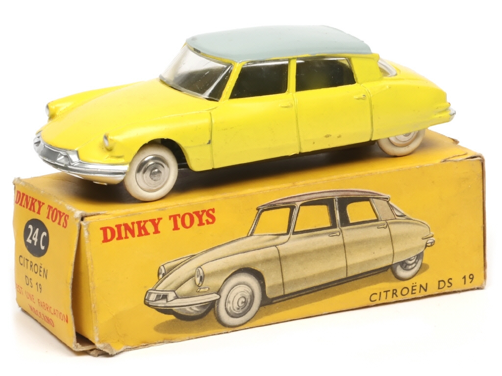 DINKY TOYS (FRANCE) 24CP CITROËN DS 19 (version avec vitres & jantes convexes) jaune citron, toit gris clair