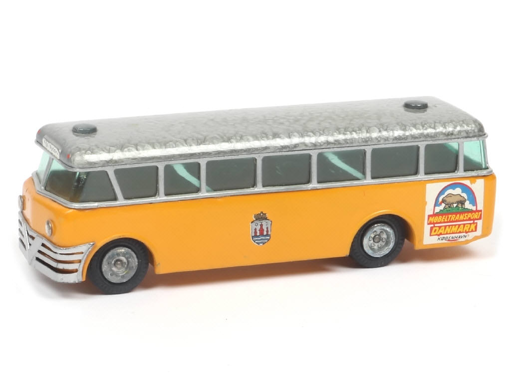 avec publicités : 'MOBELTRANSPORT DANMARK - HELLESENS - BP' - quelques légers manques sur les décalques - peinture du toit plus moirée qu'habituellement - calandre plus ou moins déformée