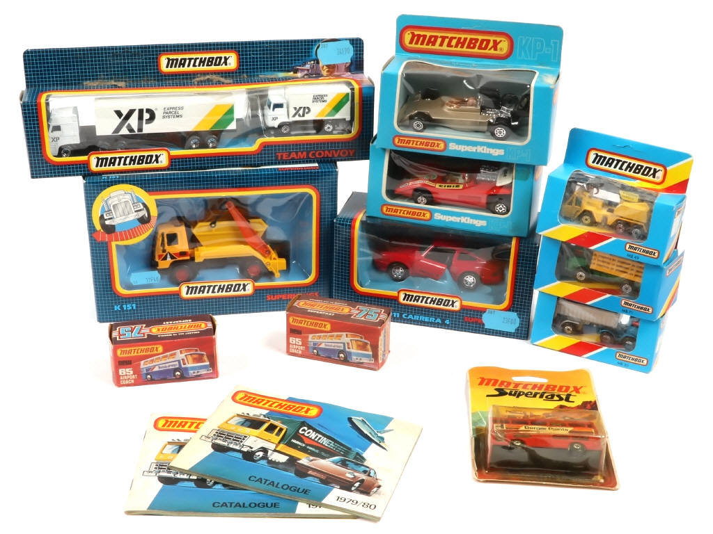 comprend notamment les modèles : voitures de courses, camion & autobus - on y joint 2 catalogues de la marque, 79 pages 15X11 cm (1979/80) - boîtes légèrement encrassées en états 'b' & 'c'