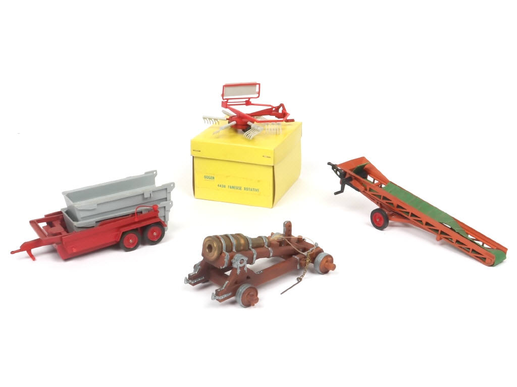 HAUSSER-ELASTOLIN (ALLEMAGNE) Ensemble de 3 matériels agricoles & un canon