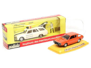 avec brancard amovible - blister de boîte en partie décollé - on y joint une RENAULT 17 TS de la marque PILEN (2 petites parties fondues sur le socle, une fêlure sur le couvercle)