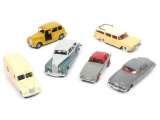 miniatures reproduisant les modèles : RAMBLER, AUSTIN, DAIMLER, JAGUAR, AC ACECA & ROLLS ROYCE - quelques éléments non d'origine