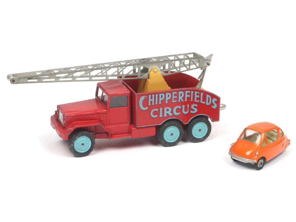 comprend : HEINKEL TROJAN (détails de peinture ajoutés) & INTERNATIONAL 6x6 grue 'CHIPPERFIELDS' (avec manques & parties cassées) - pneus séchés