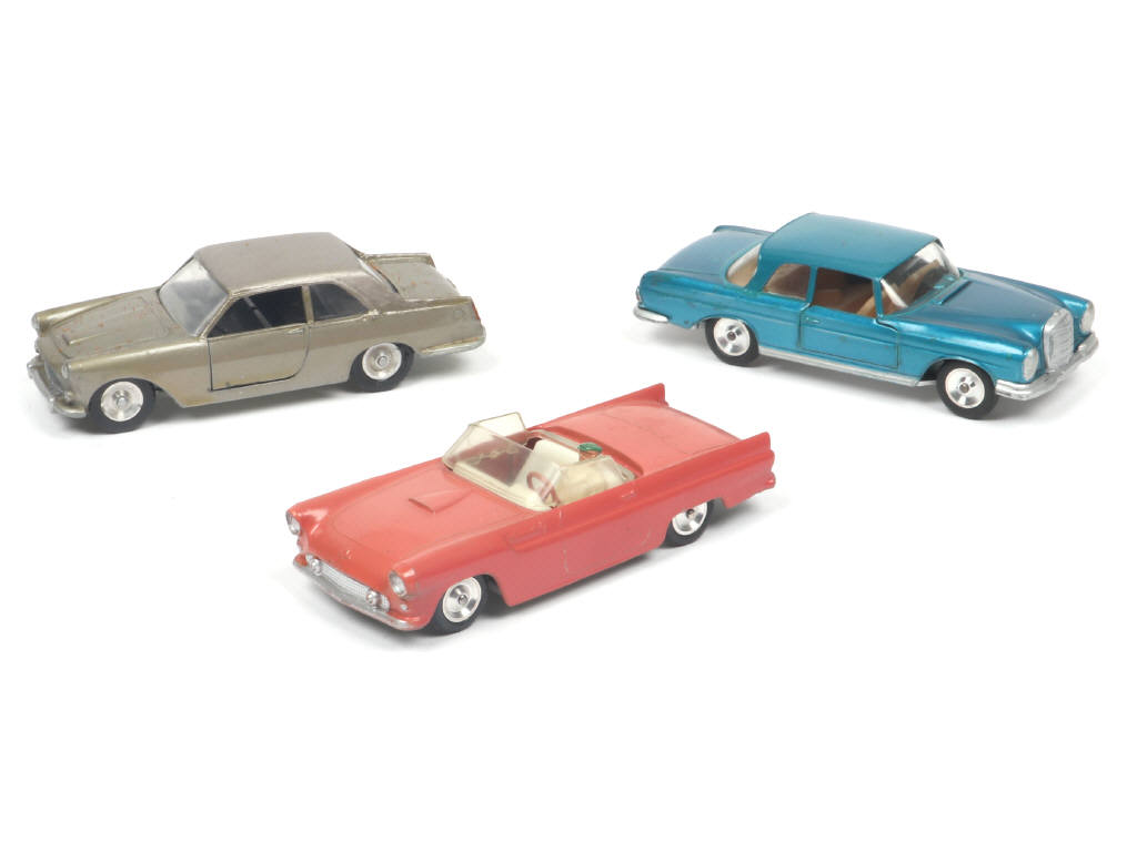 comprend : FORD THUNDERBIRD cabriolet (fixation du vitrage lache) , MERCEDES 220 SE (plancher dériveté - rivets remplacés) & LANCIA FLAMINIA - 2 modèles avec toits repeints & retouches