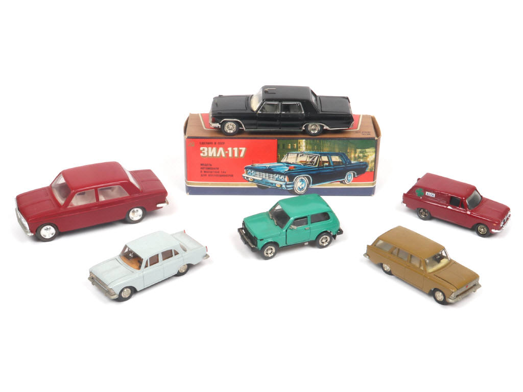 un modèle en plastique - comprend notamment les modèles : MOSKVITCH, LADA & ZIL (boite en état - quelques traces d'humidité dans la peinture de certains modèles