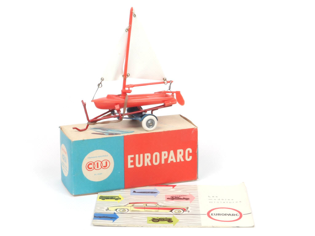 C.I.J. (FRANCE) 3/76A Voilier sur sa remorque blanc, rouge & bleu