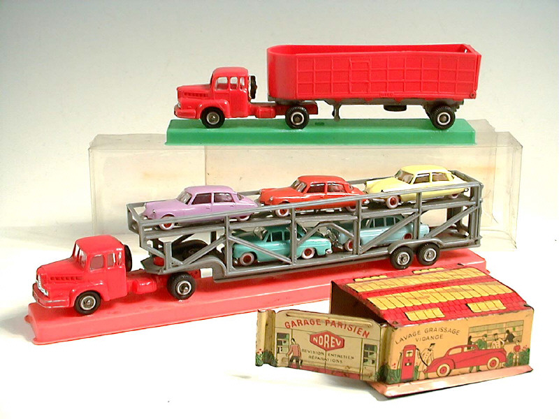 NOREV (FRANCE) 525 UNIC ZU 120 avec semi-remorque porte-voitures rouge & gris