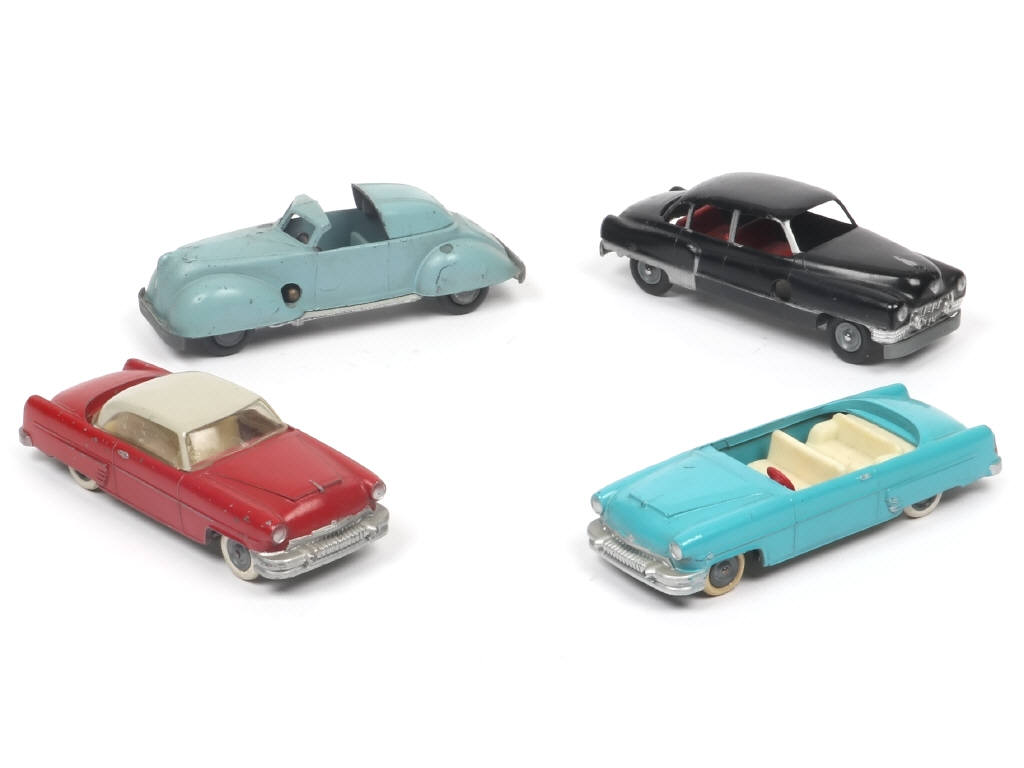 comprend notamment les modèles : CADILLAC & MERCURY (dont une avec pare-brise manquant) - un modèle avec moteur à clef (fonctionne poussivement - carrosserie avec métal fatigue & petites parties manquantes) - pneus séchés