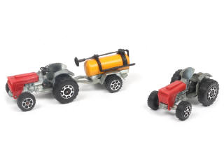 ensemble légèrement encrassé & éléments ternis - longueur des tracteurs : 5,5 cm - comprend les références : J 20 (dont avec volant manquant) & Y 53