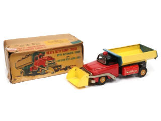 DIVERS (JAPON) Camion benne-basculante en tôle peinte rouge, bleu & jaune