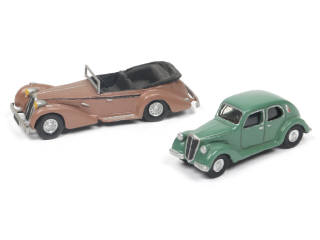 réalisations en white metal & résine des années 70 - comprend les modèles : LANCIA & HOTCHKISS (une extrémité de pare-chocs légèrement déformée)