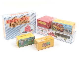 réédition 'DINKY TOYS' - comprend les références : coffret 24UXT (avec cales, surboite avec inscriptions, certificat & fascicule - véhicules jamais ouverts, avec plastiques d'origine), 541, 563, 565 (ouverts), 36A & 25O (sous plastiques jamais ouverts)