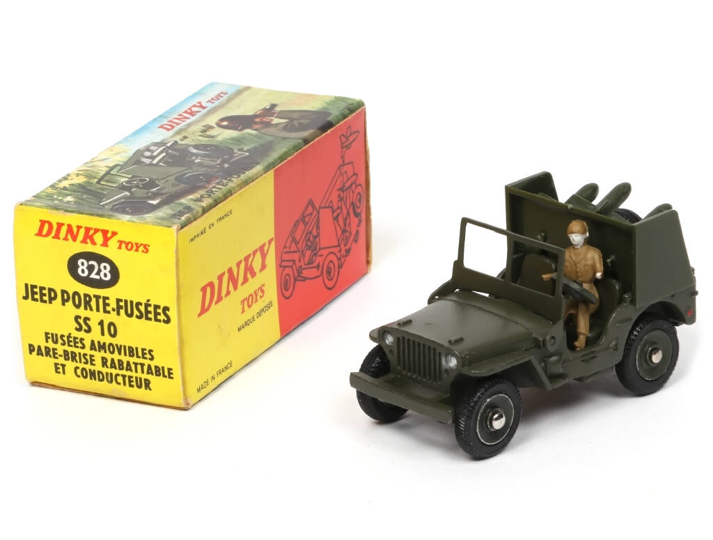 DINKY TOYS (FRANCE) 828 JEEP WILLYS Porte-fusées SS 10 kaki