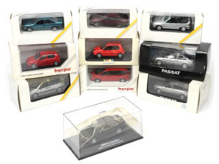 miniatures reproduisant les modèles : VOLKSWAGEN, OPEL & BMW - on y retrouve notamment les marques : SCHUCO & HERPA - quelques petits accrocs & taches sur certaines boîtes