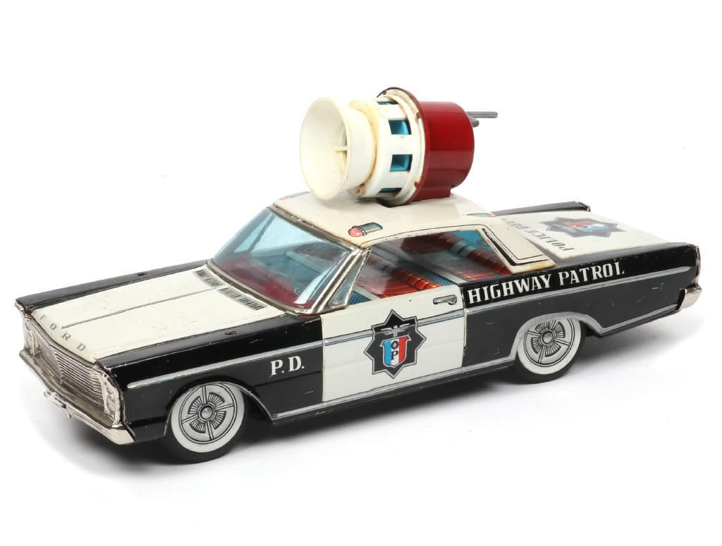 MASUDAYA TOYS Co. (JAPON) FORD GALAXIE 'HIGHWAY PATROL' en tôle lithographiée noir & blanc