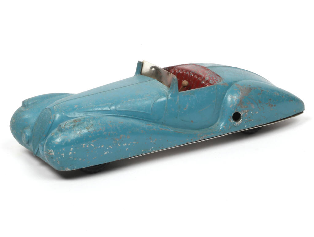 longueur : 24,5 cm - avec moteur à clef (fonctionne), manette de frein moteur (non fonctionnelle) & direction - manque 7 vis de plancher - pare-brise déformé