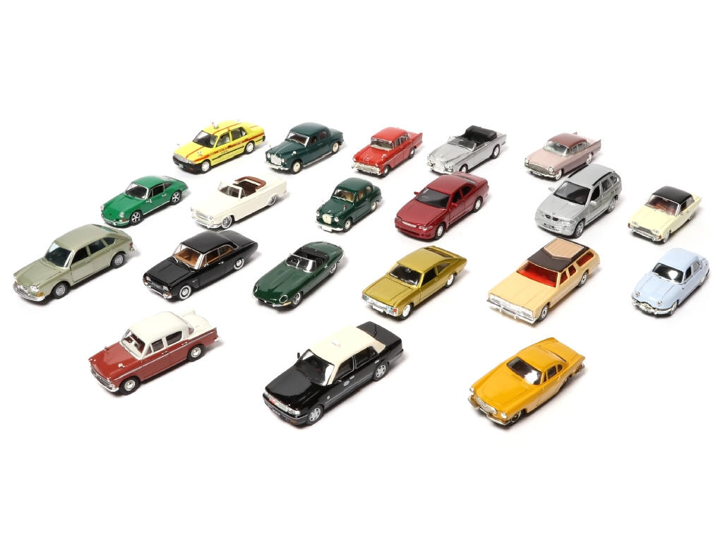 comprend notamment les modèles : VOLKSWAGEN 411 M, FORD M, DODGE MONACO ESTATE, TOYOTA MARK II & AUSTIN A35 - possibilité de petits manques & parties cassées