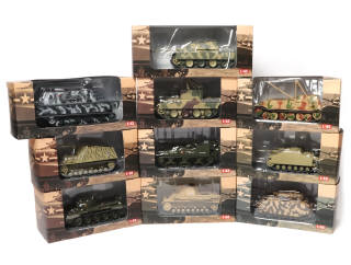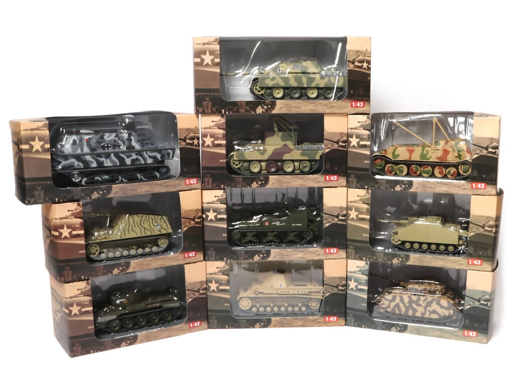 collection 'CHARS DE COMBAT DE LA SECONDE GUERRE MONDIALE' - comprend notamment les modèles : LANDUNGS PIONIER AUSBILDUNGS DENMARK (1944), PANZERJÄGER V GERMANY (1945) & GMC M12 BELGIQUE (1944)