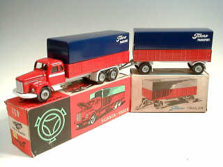 TEKNO (DANEMARK) 452 Remorque bâchée 'TEKNO TRANSPORT' rouge & bleu marine