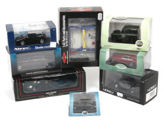 comprend notamment : MINI COOPER (manque un exemplaire dans le coffret), SKODA, CITROEN, LAND ROVER & ASTON MARTIN - on y retrouve notamment les marques : GMP, ABREX, OXFORD, EDITIONS ATLAS & NOREV