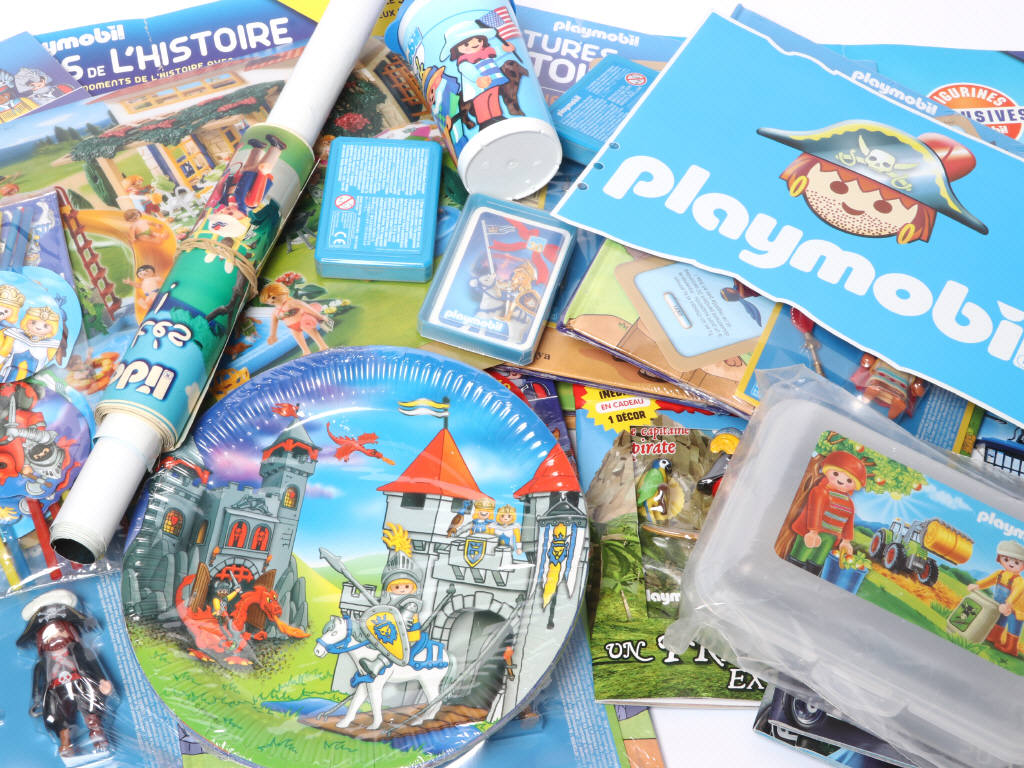 PLAYMOBIL (ALLEMAGNE) Ensemble de 13 BD, 17 magazines , figurines & nombreux goodies