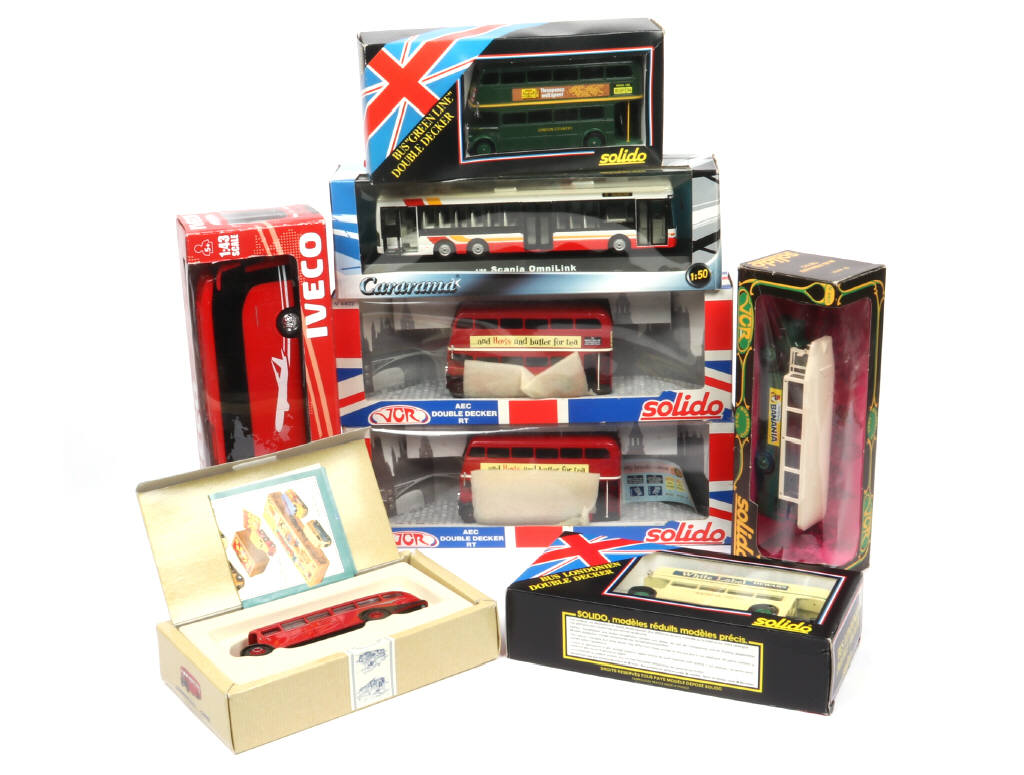 comprend notamment les modèles : SCANIA, IVECO, AEC & RENAULT - on y retrouve les marques : CORGI TOYS, SOLIDO, CARARAMA & NEW RAY - quelques frottements sur les boites
