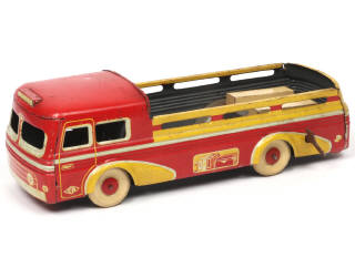 longueur : 25 cm - avec moteur à clef (fonctionne), clef (oxydée) & conducteur - toit entièrement retouché (vraisemblablement à l'usine) - sans accessoire sur l'arrière du plateau