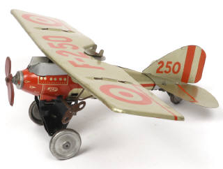 envergure : 28 cm - moteur à ressort (fonctionne) - quelques petites déformations sur les ailes & la dérive