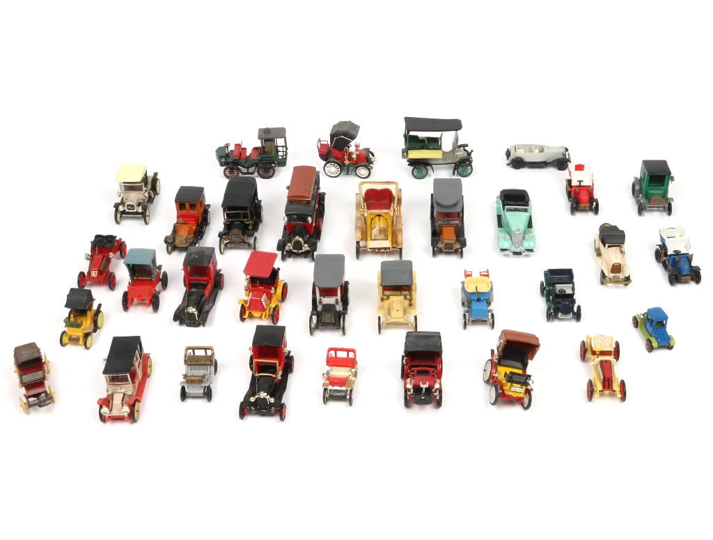 comprend notamment les modèles : GOBRON BRILLIE, RENAULT, PANHARD, FORD, LA MANCELLE AMEDEE & GEORGES RICHARD - on y retrouve notamment les marques : DEL, CLE, MINIALUXE, J.M.K, SAFIR & DUBRAY - avec manques & parties cassées