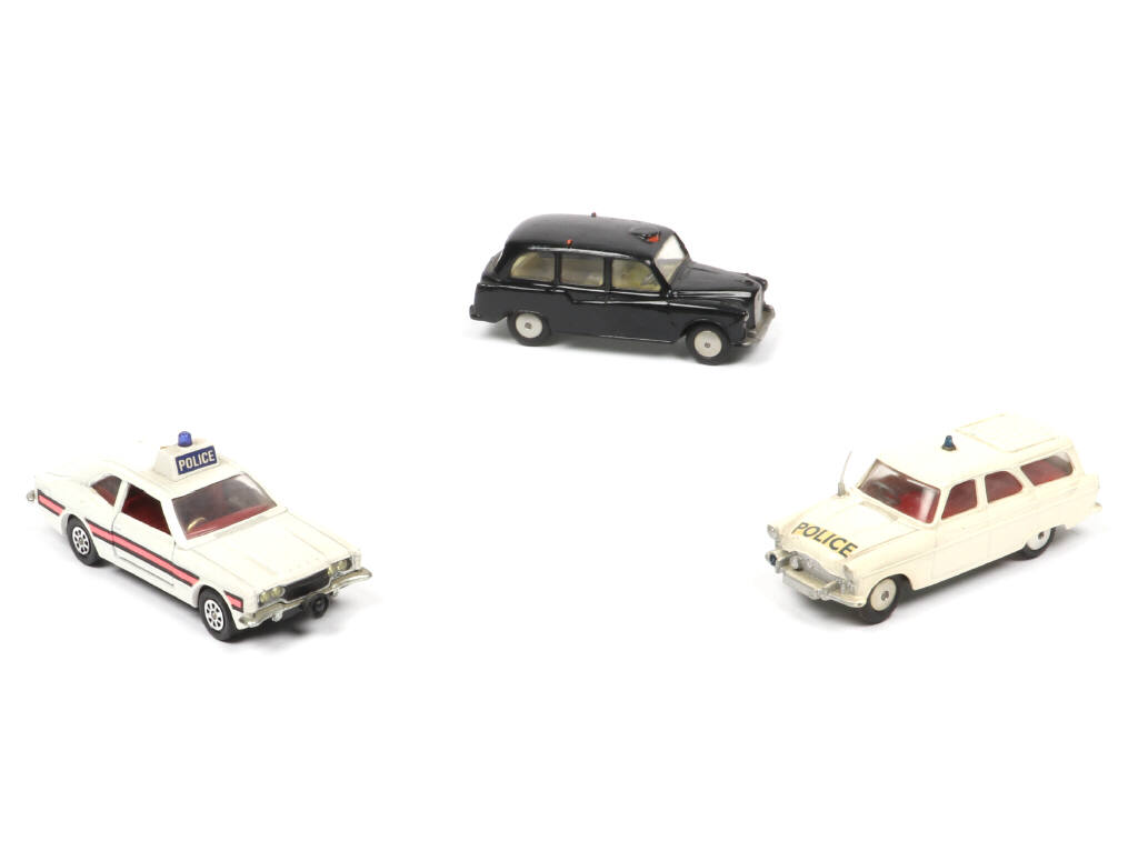 légèrement encrassé - comprend : FORD CORTINA GXL 'POLICE', ZEPHYR & AUSTIN LONDON TAXI - pneus séchés